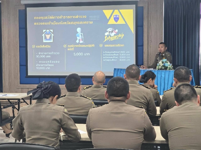 วันที่ 27 ธ.ค.67 พ.ต.ท.นัฐพล ชมศิริ สวญ.ตม.จว.สมุทรสงคราม อบรมสวัสดิการตำรวจให้แก่ข้าราชการตำรวจในสังกัดทุกนาย เพื่อให้ความรู้ ความเข้าใจ เกี่ยวกับสิทธิประโยชน์ที่ควรได้รับ ในการช่วยเหลือจากหน่วยงานต้นสังกัด และบรรยายถึงวัตถุประสงค์การจัดตั้งกองทุนสวัสดิการข้าราชการตำรวจ ตม.จว.สมุทรสงคราม เพื่อสนับสนุน ส่งเสริม สงเคราะห์ สร้างขวัญกำลังใจให้แก่ข้าราชการตำรวจและครอบครัวในสังกัด ตม.จว.สมุทรสงคราม ณ ห้องประชุมแม่กลอง ชั้น 3 ตม.จว.สมุทรสงคราม
