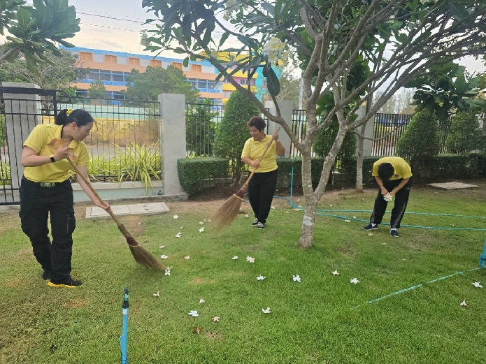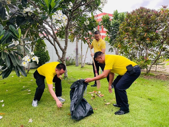 อุทา สว.ตม.จว.สมุทรสงคราม บก.ตม.3 นำข้าราชการตำรวจในสังกัด ร่วมกันทำกิจกรรม 5. ความสะอาดบริเวณโดยรอบอาคารที่ทำการ ตม.จว.สมุทรสงคราม เพื่อให้เกิดความเป็นระเบียบเรียบร้อย สวยงาม ดูน่าประทับใจ มีความพร้อมในการให้บริการประชาชน