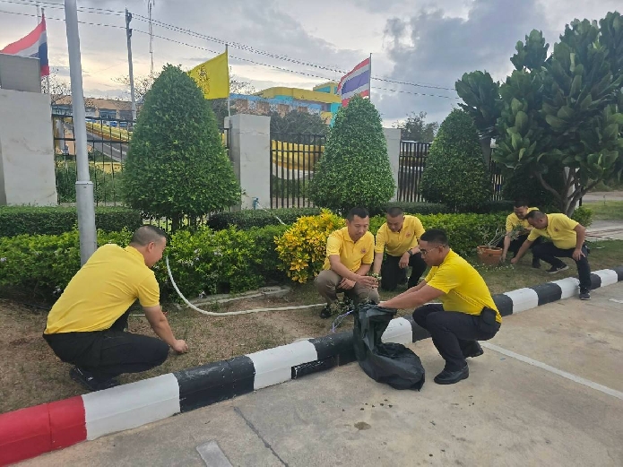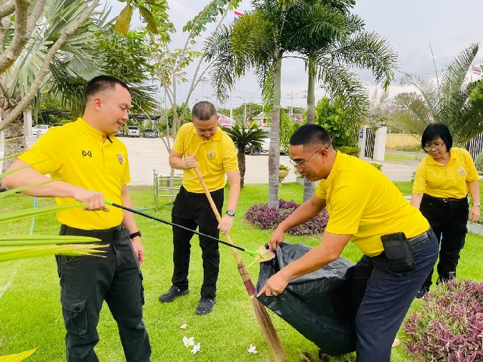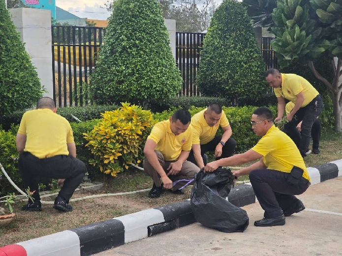 ข้าราชการตำรวจในสังกัด ร่วมกันทำกิจกรรม 5. ความสะอาดบริเวณโดยรอบอาคารที่ทำการ ตม.จว.สมุทรสงคราม