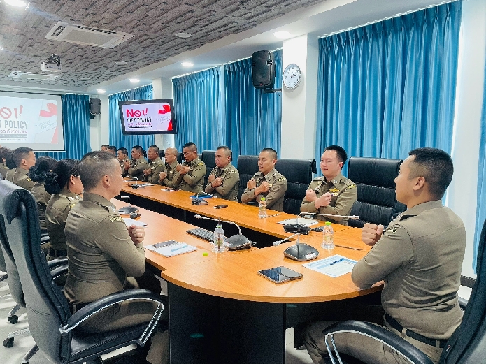 ข้าราชการตำรวจตรวจคนเข้าเมืองจังหวัดสมุทรสงคราม ร่วมประชุมประชุมมอบนโยบายงดรับสิ่งของหรือสิทธิประโยชน์จากการปฏิบัติหน้าที่หรือผลประโยชน์อื่นใด เพื่อส่งเสริมคุณธรรม จริยธรรม ความโปร่งใสในการปฏิบัติหน้าที่อย่างเป็นรูปธรรม