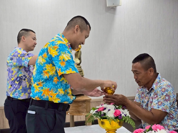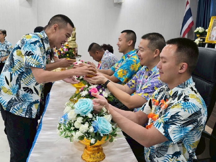 วันที่ 10 เม.ย.68 เวลา 13.00 น. พ.ต.ท. นัฐพล ชมศิริสวญ.ตม.จว.สมุทรสงคราม บก.ตม.3 พร้อมด้วย พ.ต.ท.วินัย มีบุตรภักดี , พ.ต.ท.ณัฐศิลป์ อุทา สว.ตม.จว.สมุทรสงคราม บก.ตม.3 และข้าราชการตำรวจในสังกัด จัดพิธีสรงน้ำพระหลวงพ่อเข้าเมือง สืบสานประเพณีไทยรดน้ำดำหัวอวยพรให้แก่กัน เนื่องในเทศกาลสงกรานต์ เพื่อให้การเปิดศักราชใหม่ เปี่ยมไปด้วยความสุขและความปรารถนาดี ณ อาคารที่ทำการ ตม.จว.สมุทรสงคราม