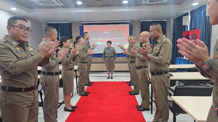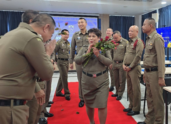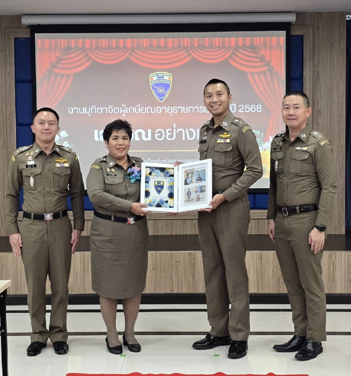 เมื่อวันที่ 23 ก.ย.68 เวลา 13.30 น. พ.ต.ท.นัฐพล ชมศิริ สวญ.ตม.จว.สมุทรสงคราม บก.ตม.3 พร้อมด้วย พ.ต.ท.วินัย มีบุตรภักดี , พ.ต.ท.ณัฐศิลป์ อุทา สว.ตม.จว.สมุทรสงคราม บก.ตม.3 และข้าราชการตำรวจในสังกัด ร่วมจัดงานมุทิตาจิตให้แก่ผู้เกษียณอายุราชการประจำปี 2568 เกษียณอย่างเกษม ณ ห้องประชุมแม่กลอง ชั้น 3 อาคารที่ทำการ ตม.จว.สมุทรสงคราม