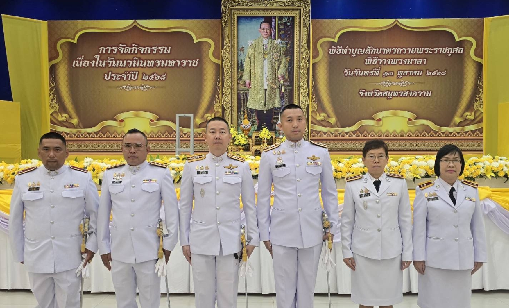 วันที่ 13 ต.ค.2568 เวลา 06.30 น. พ.ต.ท.นัฐพล ชมศิริ สวญ.ตม.จว.สมุทรสงคราม บก.ตม.3 พร้อมด้วย พ.ต.ท.วินัย มีบุตรภักดี สว.ตม.จว.สมุทรสงคราม บก.ตม.3 และข้าราชการตำรวจในสังกัด ร่วมพิธีเจริญพระพุทธมนต์ และวางพวงมาลา เนื่องในวันนวมินทรมหาราช ประจำปี 2568 ณ หอประชุมพิพัฒน์มงคล องค์การบริหารส่วนจังหวัดสมุทรสงคราม โดยมี นายชยชัย แสงอินทร์ ผู้ว่าราชการจังหวัดสมุทรสงคราม เป็นประธาน