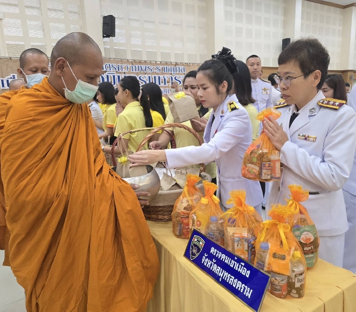 วันที่ 13 ต.ค.2568 เวลา 07.30 น. พ.ต.ท.นัฐพล ชมศิริ สวญ.ตม.จว.สมุทรสงคราม บก.ตม.3 พร้อมด้วย พ.ต.ท.วินัย มีบุตรภักดี สว.ตม.จว.สมุทรสงคราม บก.ตม.3 และข้าราชการตำรวจในสังกัด ร่วมพิธีทำบุญตักบาตรถวายพระราชกุศล เนื่องในวันนวมินทรมหาราช ประจำปี 2568 ณ หอประชุมพิพัฒน์มงคล องค์การบริหารส่วนจังหวัดสมุทรสงคราม โดยมี นายชยชัย แสงอินทร์ ผู้ว่าราชการจังหวัดสมุทรสงคราม เป็นประธาน