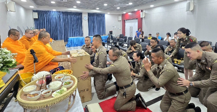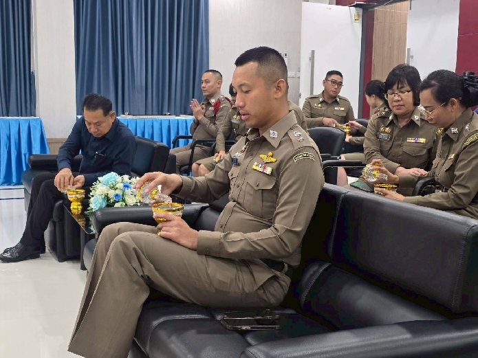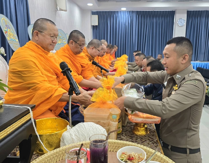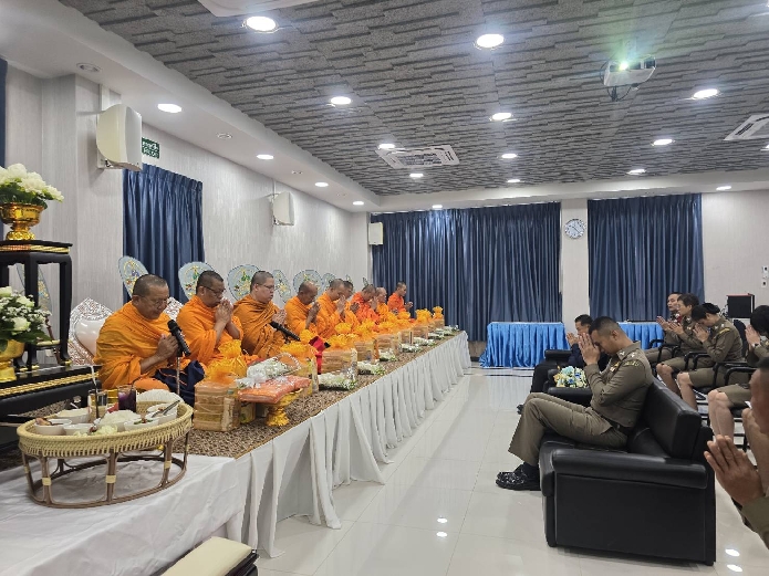 ร่วมทำบุญอาคารที่ทำการฯ โดยเจริญพระพุทธมนต์ และถวายสังฆทานแด่พระสงฆ์ จำนวน 9 รูป เนื่องใน วันตำรวจ ประจำปี 2568