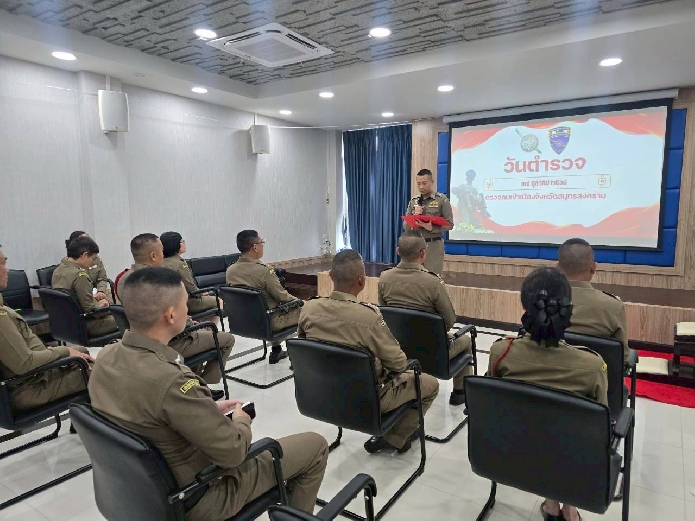 สวญ.ตม.จว.สมุทรสงคราม นำสารของ พล.ต.อ.กิตติ์รัฐ พันธุ์เพ็ชร์ ผู้บัญชาการตำรวจแห่งชาติ เนื่องใน วันตำรวจ 17 ตุลาคม 2568 มาประกาศให้ข้าราชการตำรวจในสังกัดทราบโดยทั่วกัน
