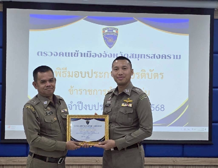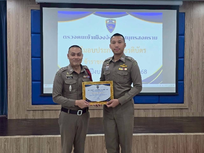 มอบประกาศนียบัตรให้แก่ข้าราชการตำรวจในสังกัด ตามโครงการ ตำรวจดีเด่น ของ ตม.จว.สมุทรสงคราม ประจำปีงบประมาณ พ.ศ.2568