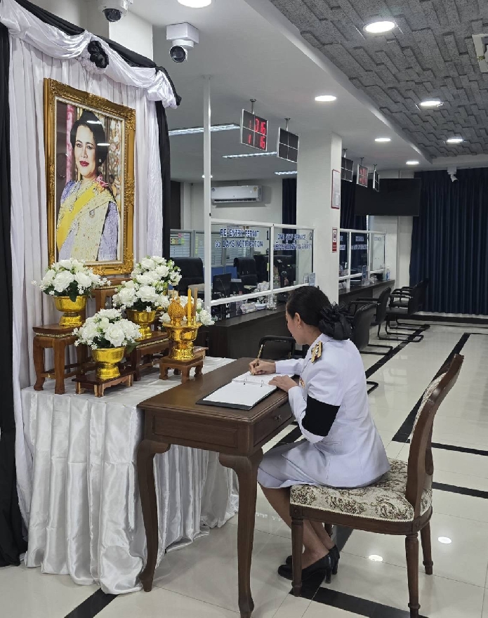 ร่วมลงนามถวายความอาลัย สมเด็จพระนางเจ้าสิริกิติ์ พระบรมราชินีนาถ พระบรมราชชนนีพันปีหลวง ณ อาคารที่ทำการ ตม.จว.สมุทรสงคราม