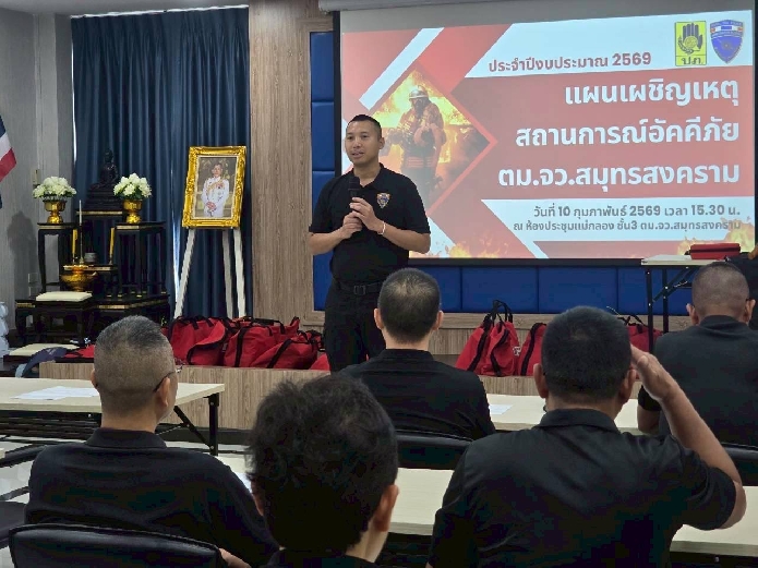 วันที่ 10 ก.พ.69 เวลา 15.00 - 18.00 น. พ.ต.ท.นัฐพล ชมศิริ สวญ.ตม.จว.สมุทรสงคราม ,พ.ต.ท.วินัย มีบุตรภักดี และ พ.ต.ต.พงศ์สรรค์ ทองใบ สว.ตม.จว.สมุทรสงคราม นำข้าราชการตำรวจและลูกจ้างในสังกัด เข้าร่วมอบรมตามแผนเผชิญเหตุสถานการณ์อัคคีภัย ของตรวจคนเข้าเมืองจังหวัดสมุทรสงคราม ประจำปีงบประมาณ พ.ศ.2569 เพื่อให้มีความรู้ในการป้องกันอุบัติเหตุ การป้องกันอัคคีภัย การฝึกดับเพลิง จนสามารถควบคุมและแก้ไขสถานการณ์จากการเกิดอัคคีภัยเบื้องต้นได้ โดยมีวิทยากรจากเทศบาลเมืองสมุทรสงครามมาเป็นครูผู้ฝึกสอน