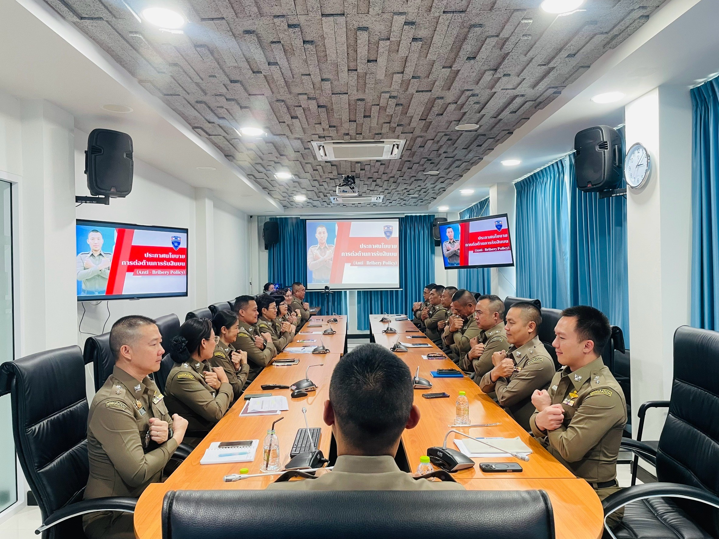 วันที่ 12 มี.ค.2568 พ.ต.ท.นัฐพล ชมศิริ สวญ.ตม.จว.สมุทรสงคราม บก.ตม.3 พร้อมด้วย พ.ต.ท.วินัย มีบุตรภักดี และ ว่าที่ พ.ต.ท.ณัฐศิลป์ อุทา สว.ตม.จว.สมุทรสงคราม บก.ตม.3 และ ข้าราชการตำรวจในสังกัด ตม.จว.สมุทรสงคราม ประชุมมอบนโยบายต่อต้านการรับสินบน (Anti-Bribery Policy) มีการเผยแพร่ ณ จุดบริการ หรือ จุดประชาสัมพันธ์ และบนหน้าเว็บไซต์ ณ ห้องประชุม ศปก.ชั้น 2 ตม.จว.สมุทรสงคราม