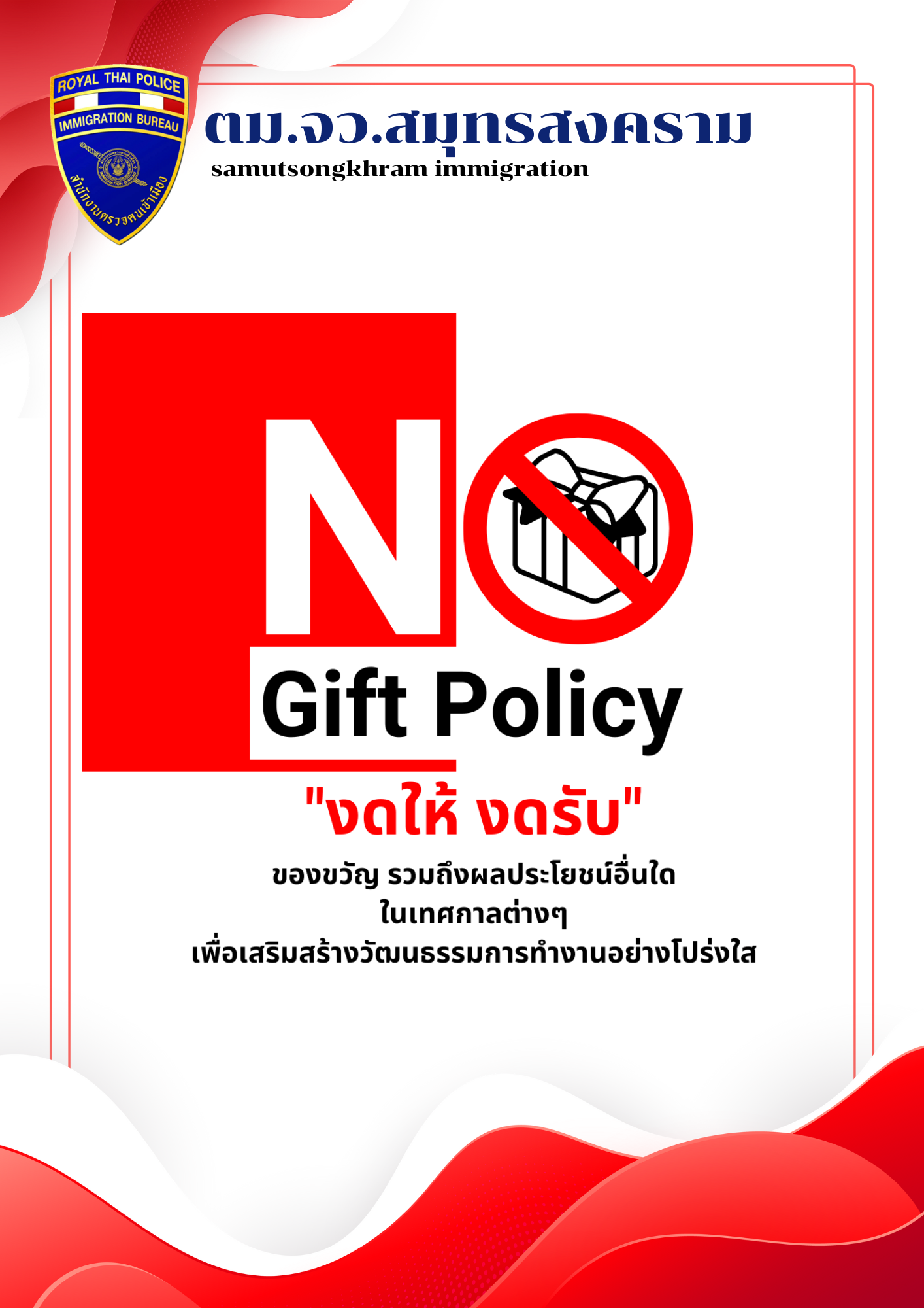 | นโนบายไม่รับของขวัญและกำนัลทุกชนิด (No Gift Policy) |